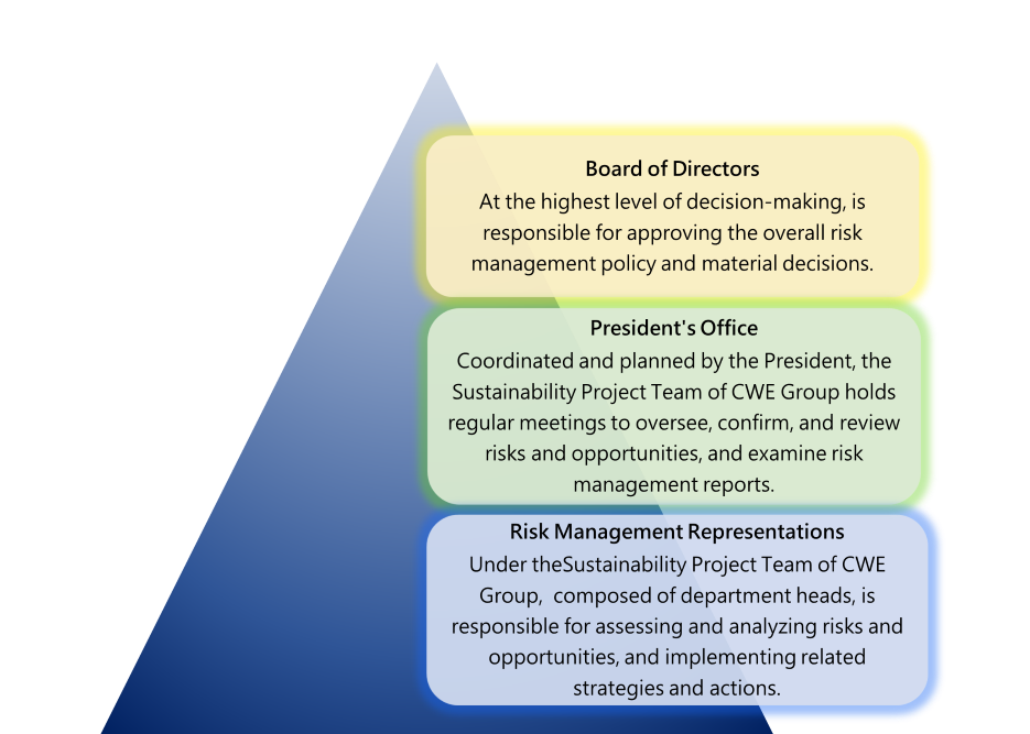 To ensure proper guidance for the Company’s risk management operations and to effectively manage risks, the Risk Management Policy was established in 2023. The policy is reviewed periodically and submitted to the Board of Directors for approval prior to the annual group risk assessment, serving as the Company’s highest guiding principle. Each functional unit is responsible for identifying risks according to its professional duties and developing management strategies and response plans to mitigate, transfer, or avoid risks, thereby effectively reducing operational risk.